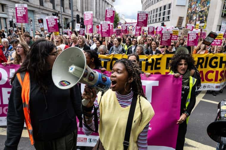 La peur de la menace du fascisme et de l'extrême droite a été une grande partie de la journée. Il est venu après que le nazi Tommy Robinson a mobilisé 100 000 fascistes et racistes dans les rues de Londres samedi dernier dans la plus grande démonstration d'extrême droite de l'histoire britannique.